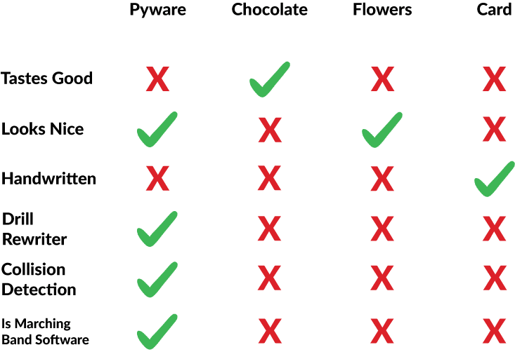 Still not convinced? Check out this comparison of Pyware versus other “typical” Valentine’s Day gifts: